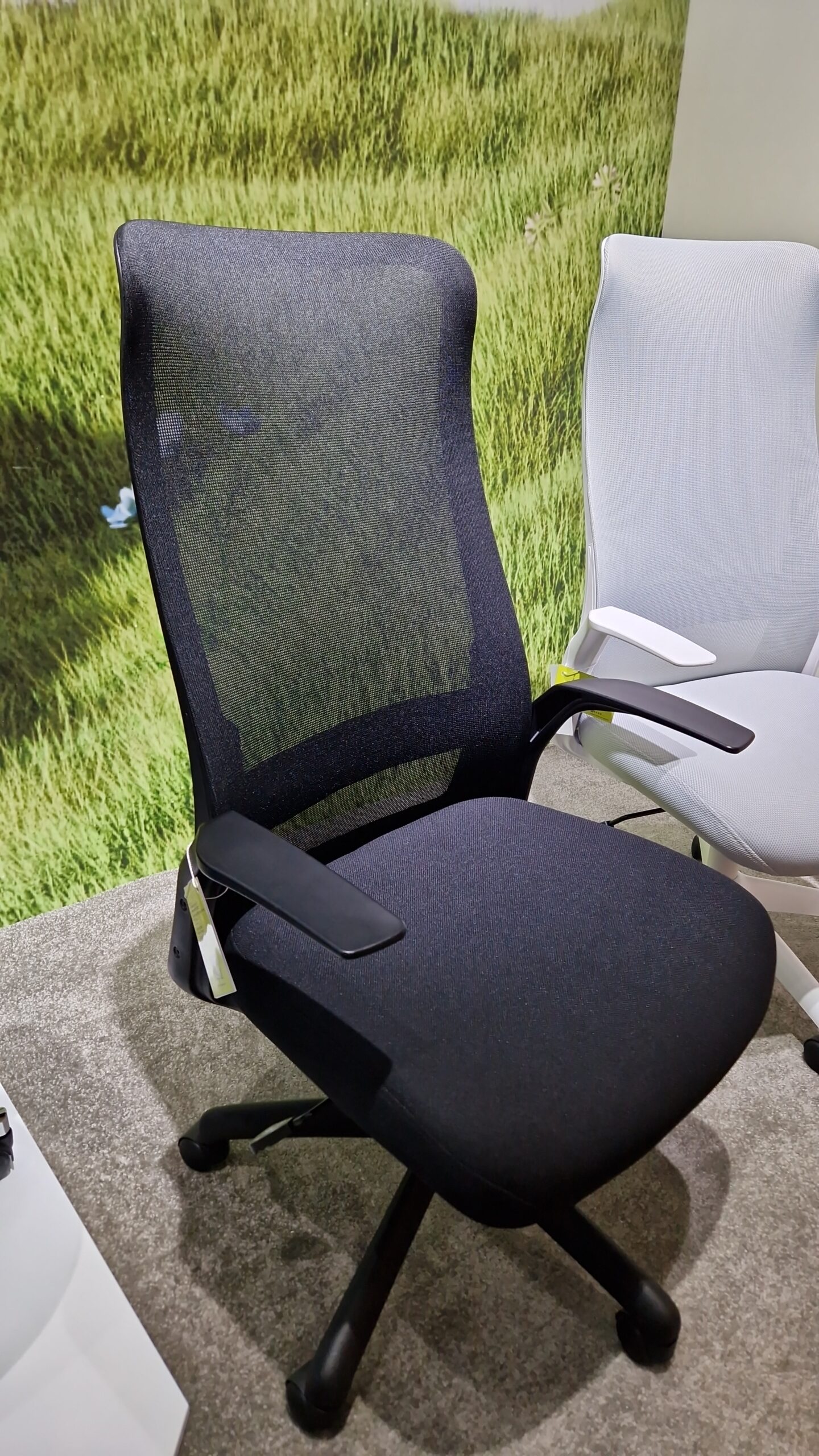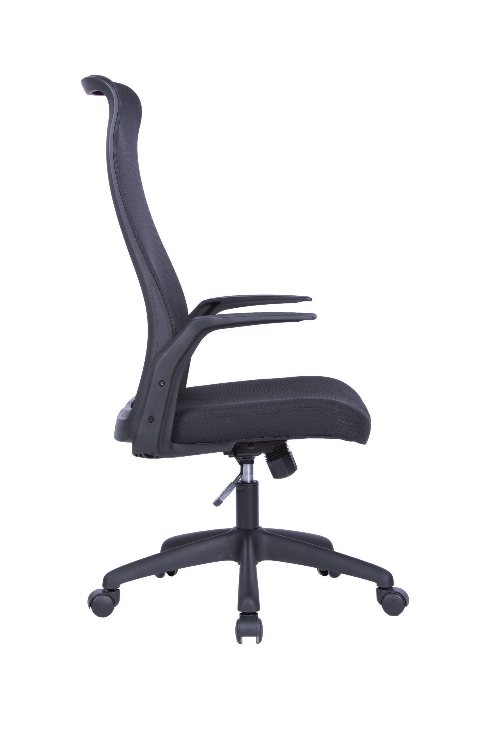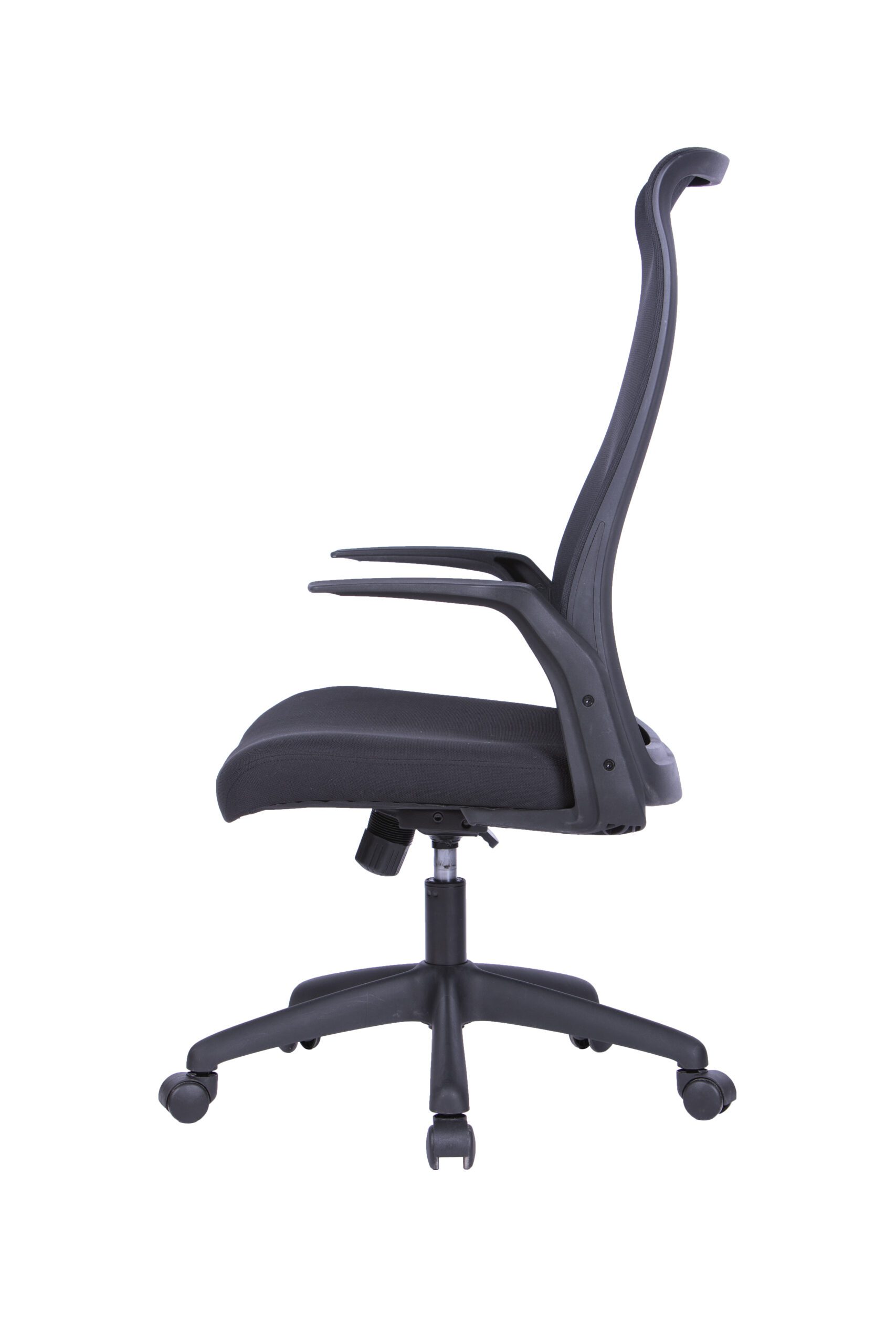Spătarul înalt tapițat cu mesh (plasă) permite ventilarea optimă a spatelui, prevenind supraîncălzirea și menținând confortul termic pe toată durata zilei.
