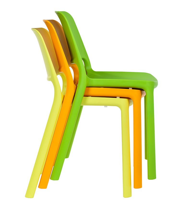 Scaun din polipropilenă cu fibre de sticlă în compoziție, turnat prin injecție folosind tehnologia de turnare a aerului cu gaz, îl transformă pe acesta într-un produs rezistent și solid.
