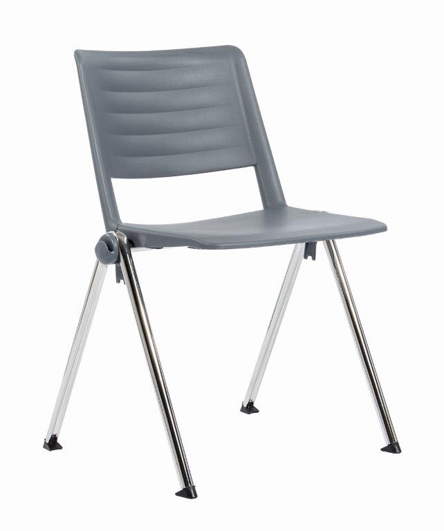 Scaun vizitator fix, șezut și spătar PP. Cadrul scaunului este din oțel cu patru picioare (disponibil in 3 culori: negru, gri sau cromat), dedicat folosirii intense. Produs certificat conform standardelor menționate mai jos. Culori PP sezut si spatar a se vedea mai sus.